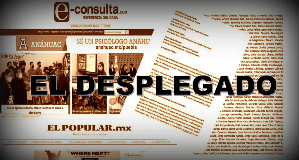 Desde diferentes sectores de la sociedad civil, instamos al Gobierno del Estado de Puebla a respetar la libertad de ejercer un periodismo libre, crítico, incluyente y plural que investigue y cuestione los excesos cometidos desde el poder.