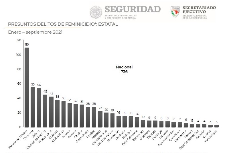 El último reporte a septiembre de este año, dado a conocer por el Secretariado Ejecutivo del Sistema Nacional de Seguridad Pública refiere que 80 mil mujeres en el país, han sido víctimas de algún tipo de delito y violencia entre los que destacan: Feminicidios, trata de personas, secuestros, extorsiones entre otros.