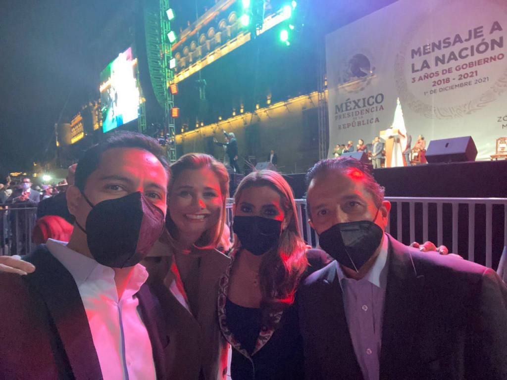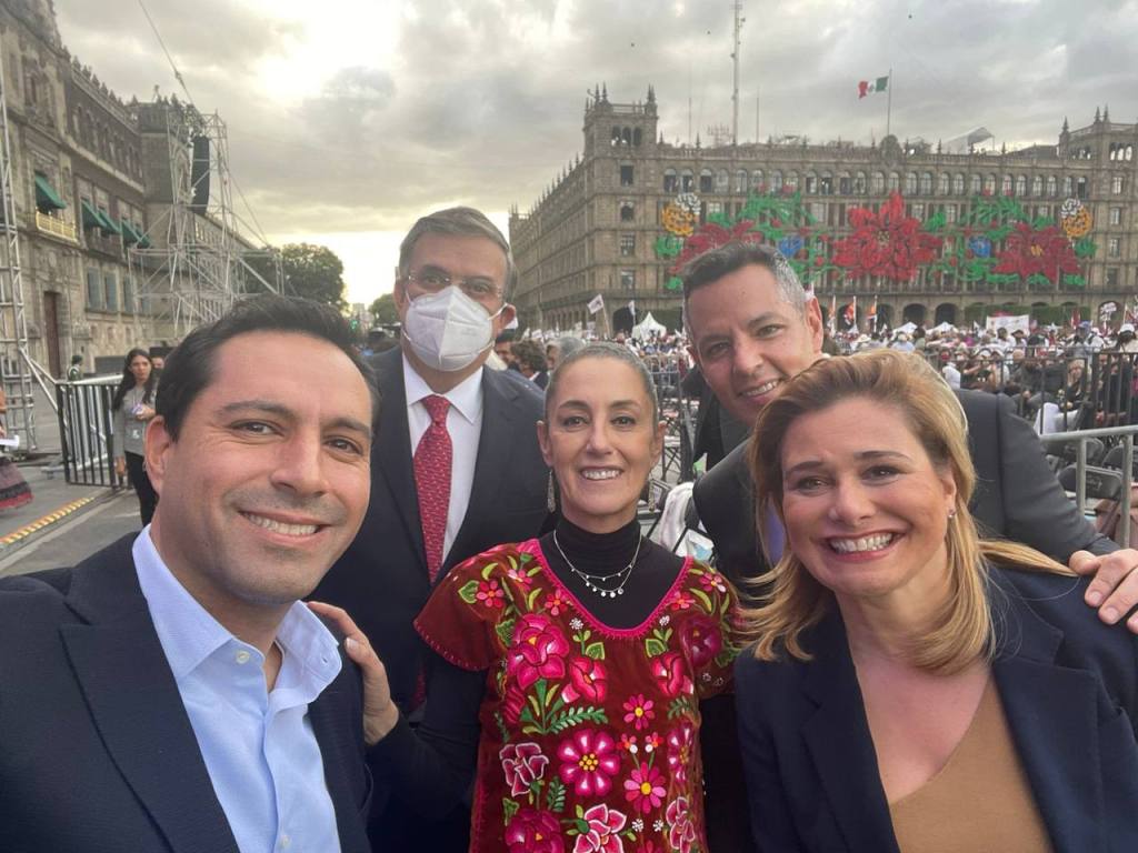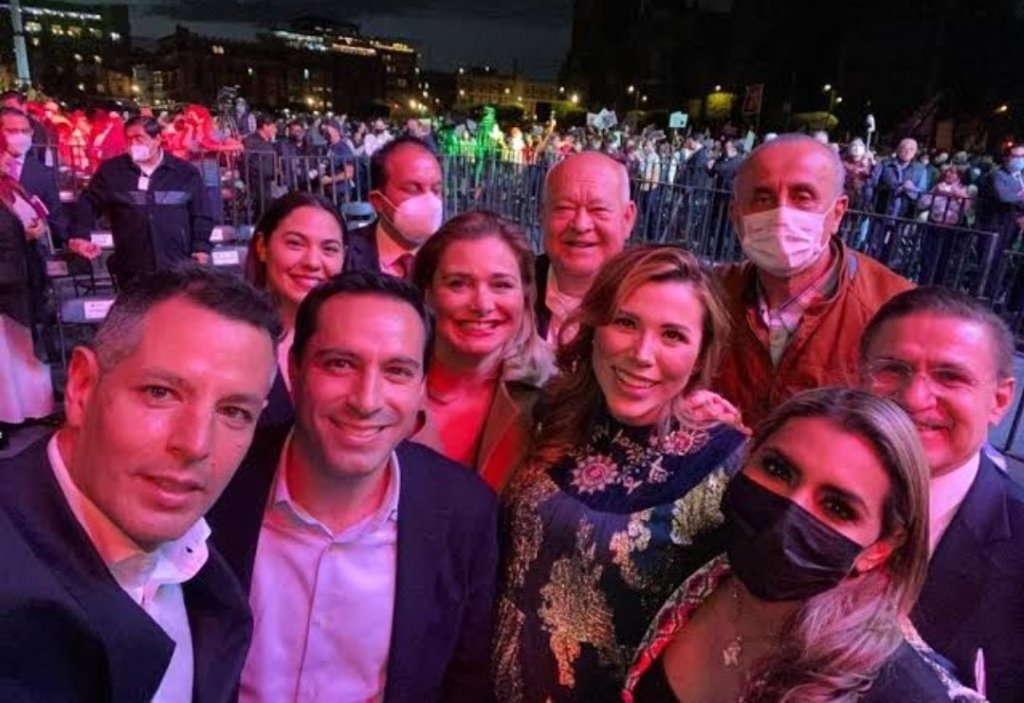 Juntos y felices, así lucieron los gobernadores aún panistas Maru Campos de Chihuahua y Mauricio Vila de Yucatán, durante el Amlofest realizado en el zócalo capitalino para celebrar los 3 años del gobierno del Presidente Andrés Manuel López Obrador.