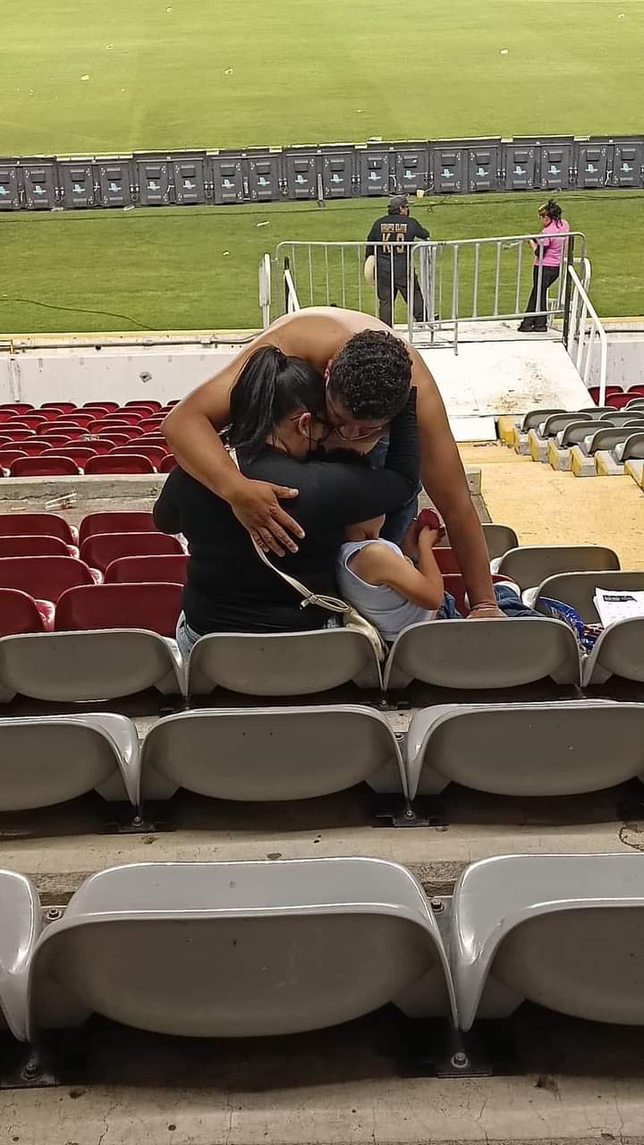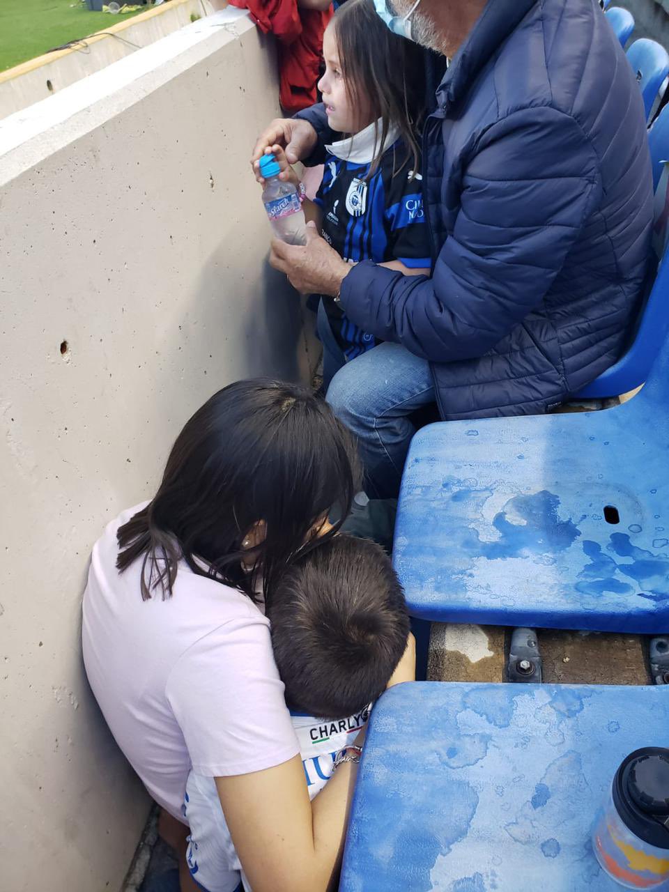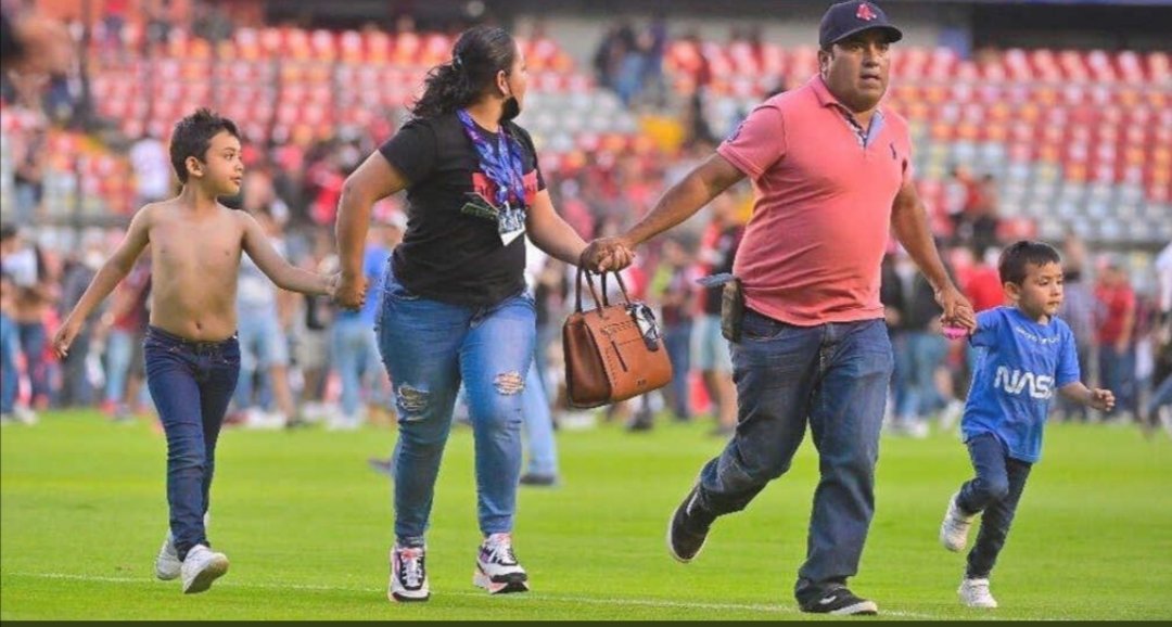Niños, mujeres, gente de la tercera edad huyendo de un estadio donde supuestamente se asiste para presenciar un espectáculo deportivo.