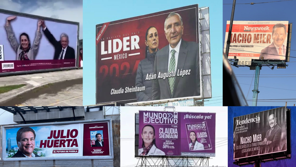 La autoridad electoral permanece silenciosa frente a esta agresiva invasión de espectaculares que inundan edificios, fachadas, puentes y estructuras citadinas.
