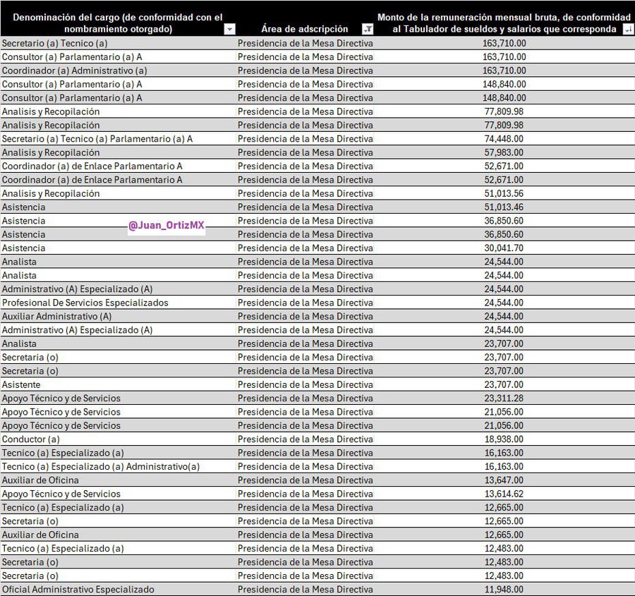 Y es que no sólo han sido artículos de lujo, Gutiérrez Luna se ha servido con la cuchara grande en San Lázaro, ya que este fin de semana, el analista político Juan Ortíz dio a conocer la lista de 41 personas que trabajan sólo para el morenista y cuya nómina asciende a un millón 800 mil pesos. Gutiérrez sólo ha presentado seis iniciativas en lo que va del año.